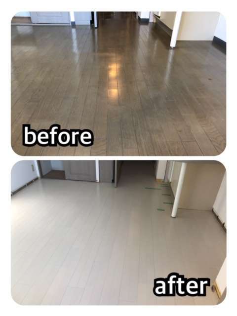 長年、使用してきた床の凹みもなくなり、綺麗な白い床が完成しました♪